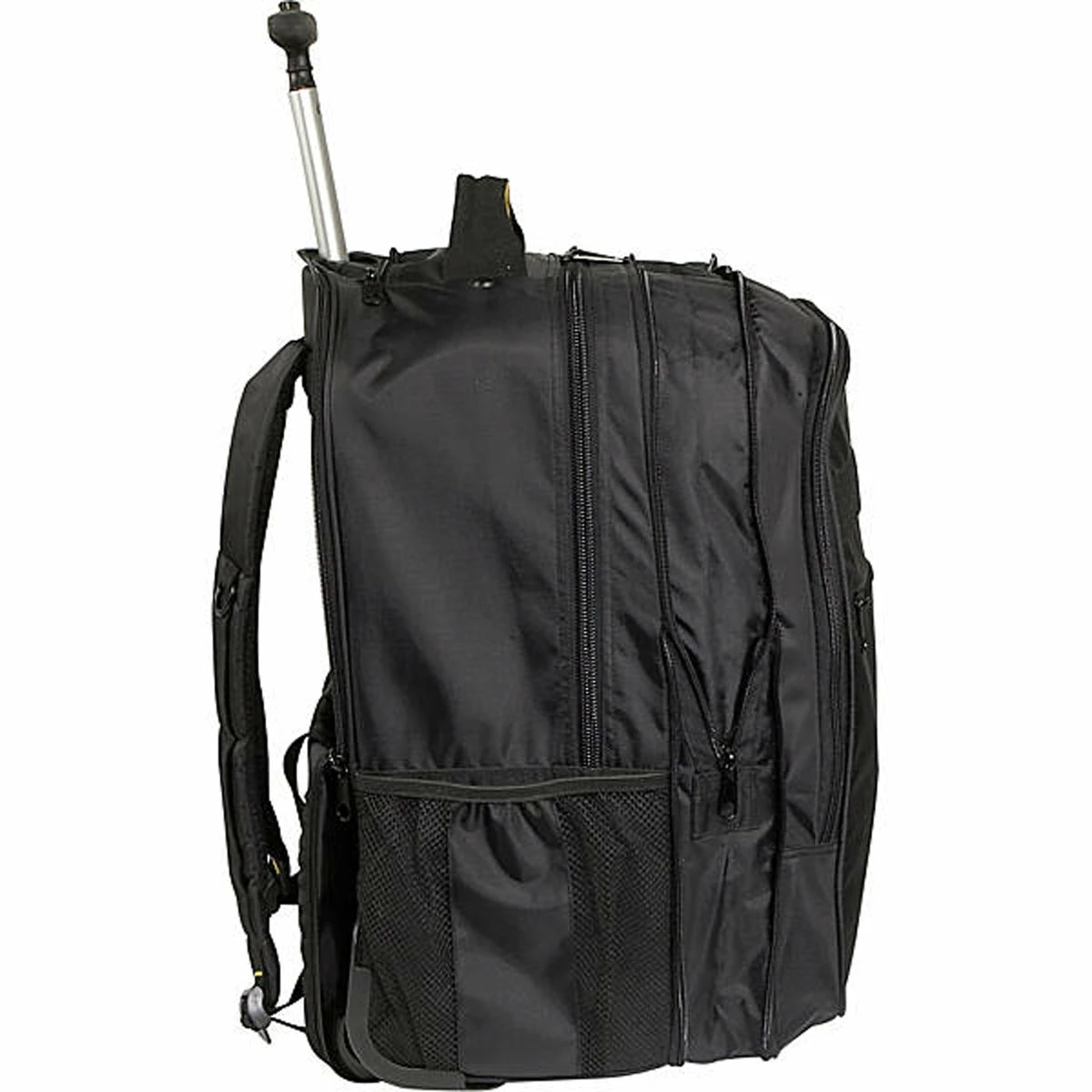 The A. Saks EXPANDABLE Wheeled Laptop Backpack is created with lightweight durable nylon and features comfortable straps for easy carrying. Suitable for commuting or studying, it provides ample room for a laptop, books, folders and other necessities. Whether lugging it along or wheeling it, the backpack is sure to reduce fatigue.