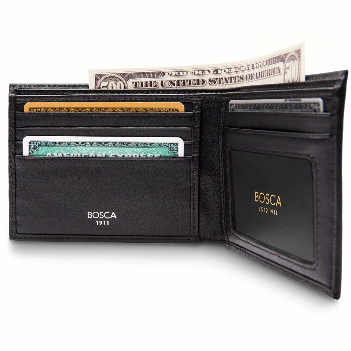When you think of the classic leather bifold wallet, you’re thinking of our Executive ID Wallet. If you value clean design and quality leather, this is a perfect choice. This men’s Bifold wallet is simple and elegant. The clear ID window makes it easy to brandish your credentials. There are a total of five card pockets giving plenty of space for all your business, credit, debit, and loyalty cards.