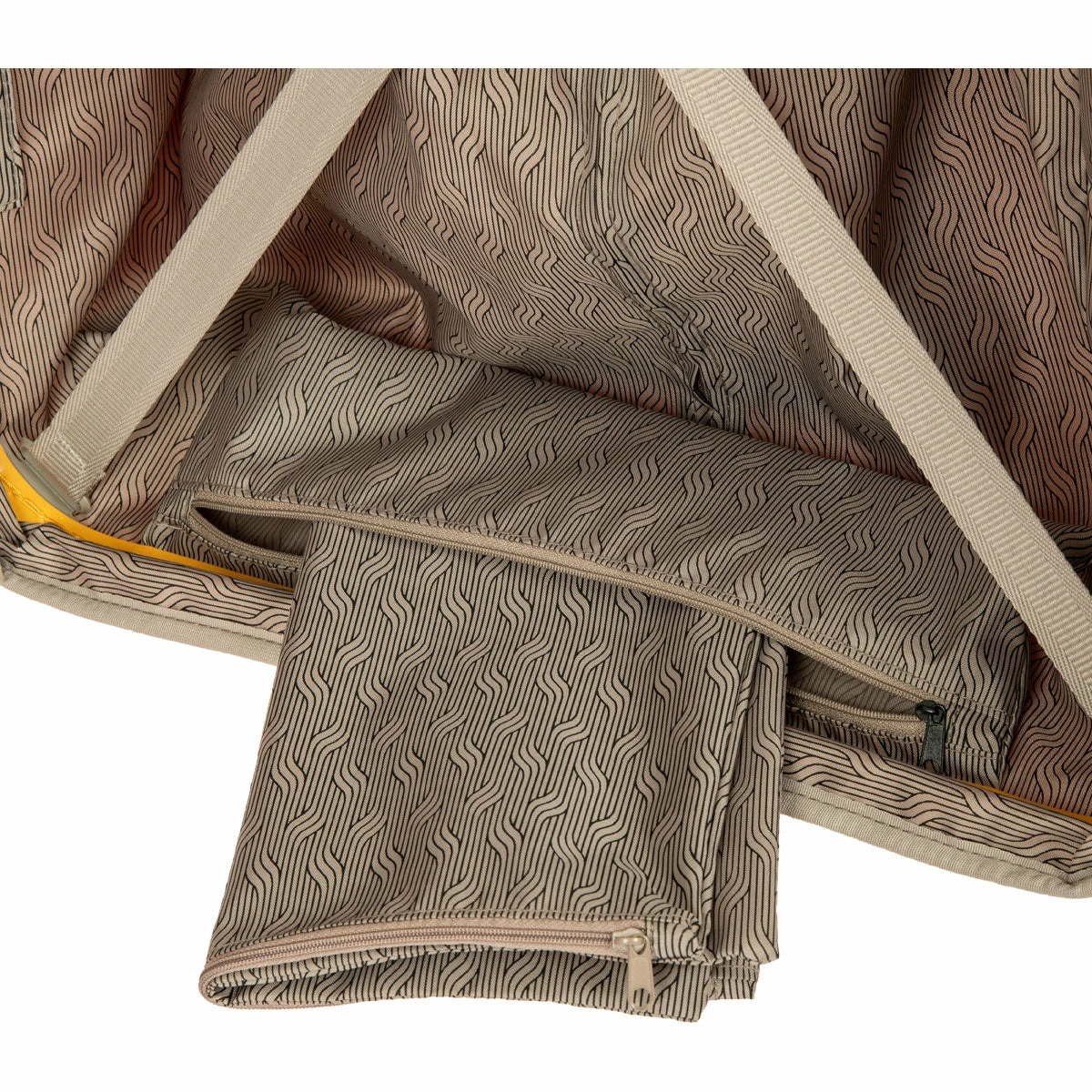 - INTERIOR: a two compartment interior is fully lined with a printed lining. One side with a full zipper section and mesh pocket, the other with a stretchable strap to hold all your belongings in place, a smaller pocket for smaller accessories and a shoe/laundry bag.