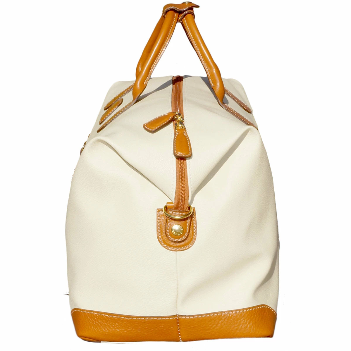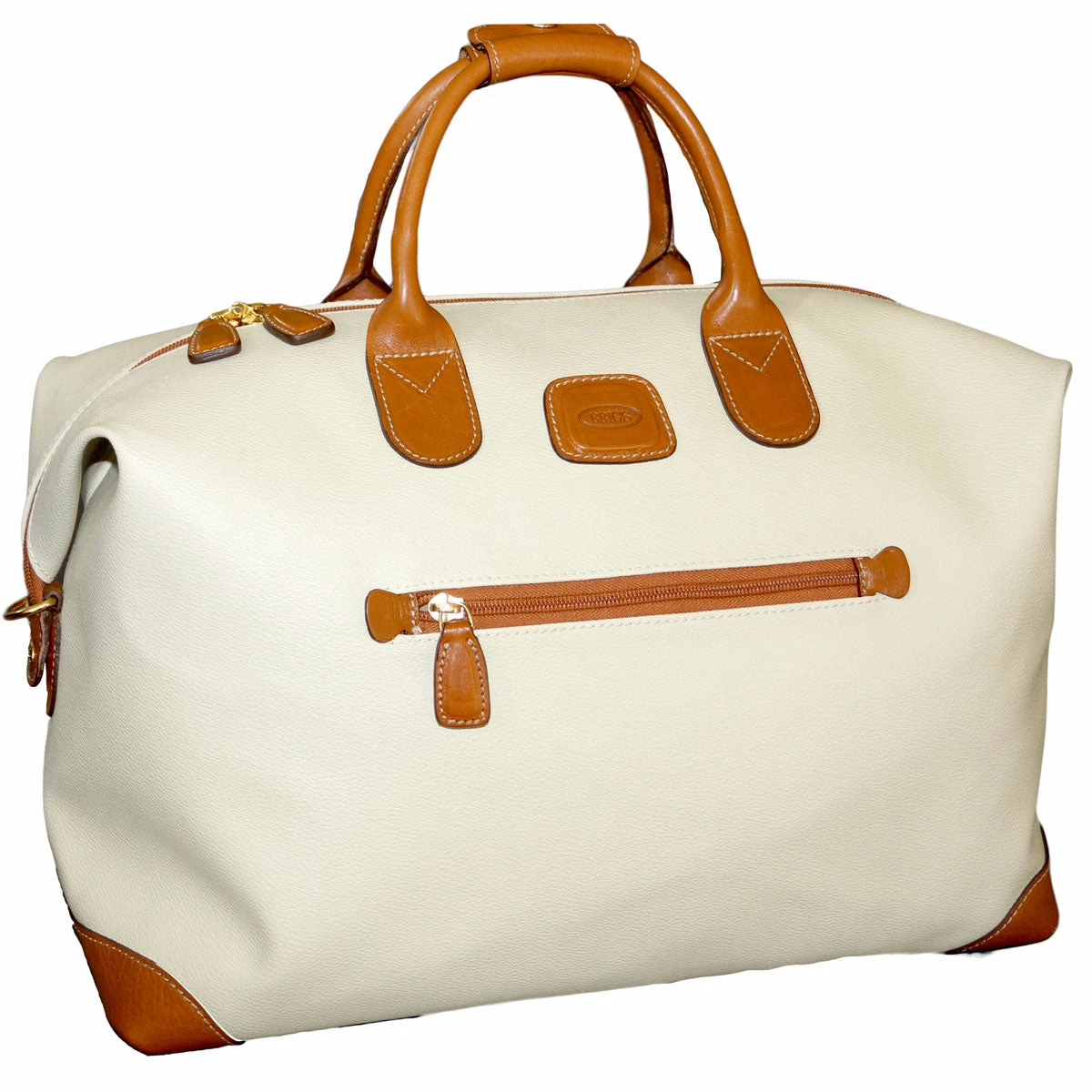 The Firenze 22″ Cargo Duffle is handcrafted using durable, easy to clean, embossed leather-like PVC with vegetable tanned leather trimmings. This classic holdall is offered in a signature Cream color way. BRIC’S Firenze offers an assortment of travel items that look good and travel even better. The interior lining features a BRIC’S logo jacquard print that is also water-proof. Toss our trusty duffle bag into the backseat, and head out on the open road. This is the must-have road trip travel bag.