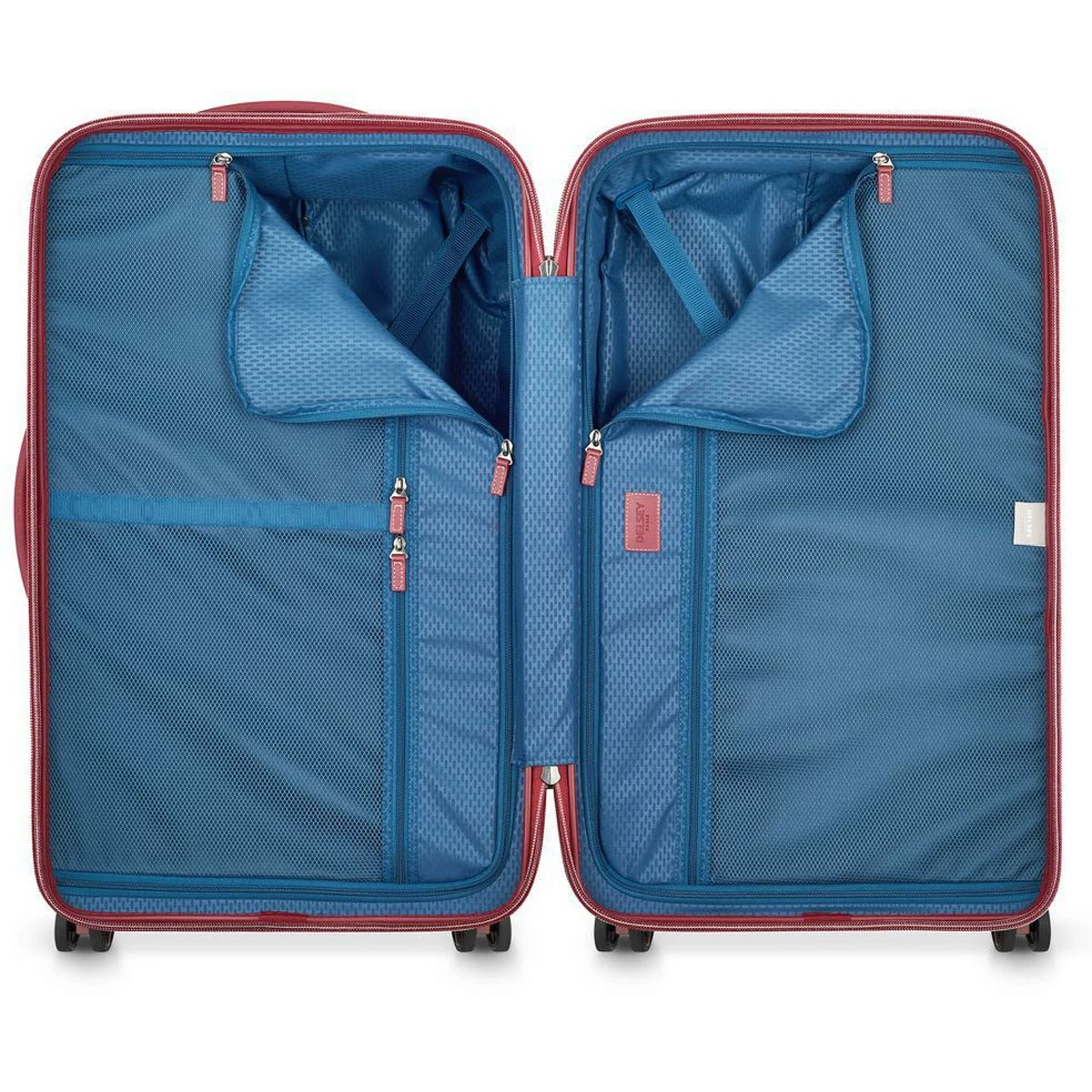The Delsey Chatelet Air 2.0 26″ Trunk Spinner is designed in a sturdy trunk format which features an ergonomic trolley system with soft-grip side and top carrying handles. Shock-absorbing corner protectors safeguard against wear and tear and add a touch of elegance to the bag.