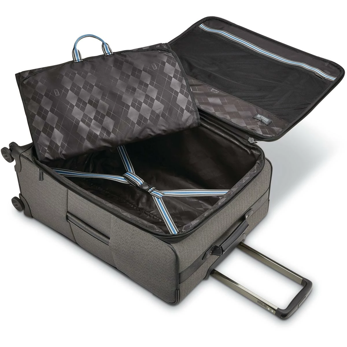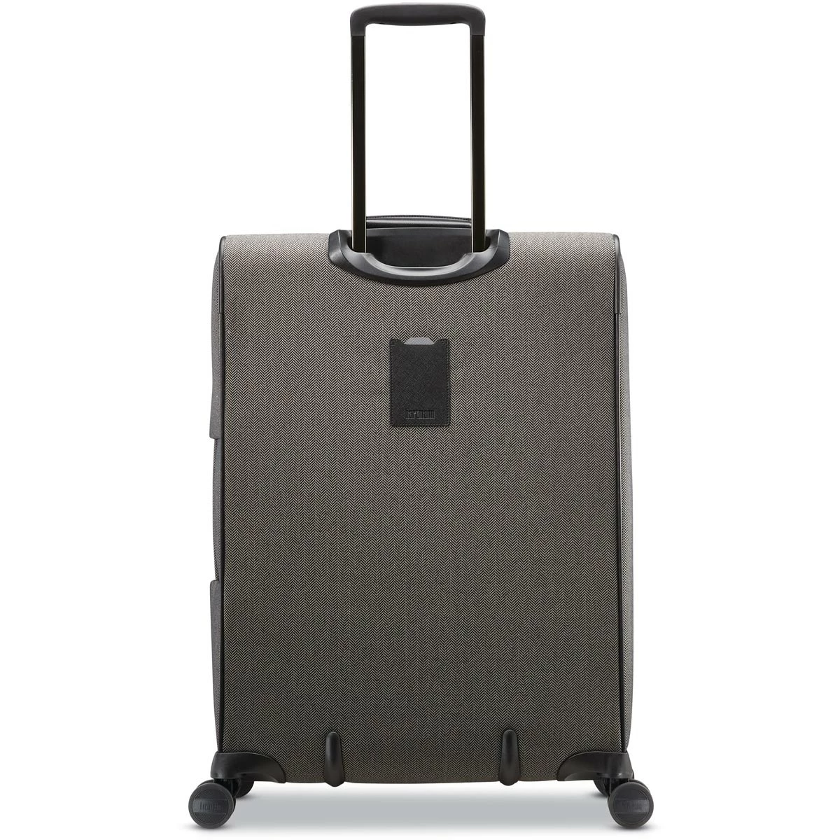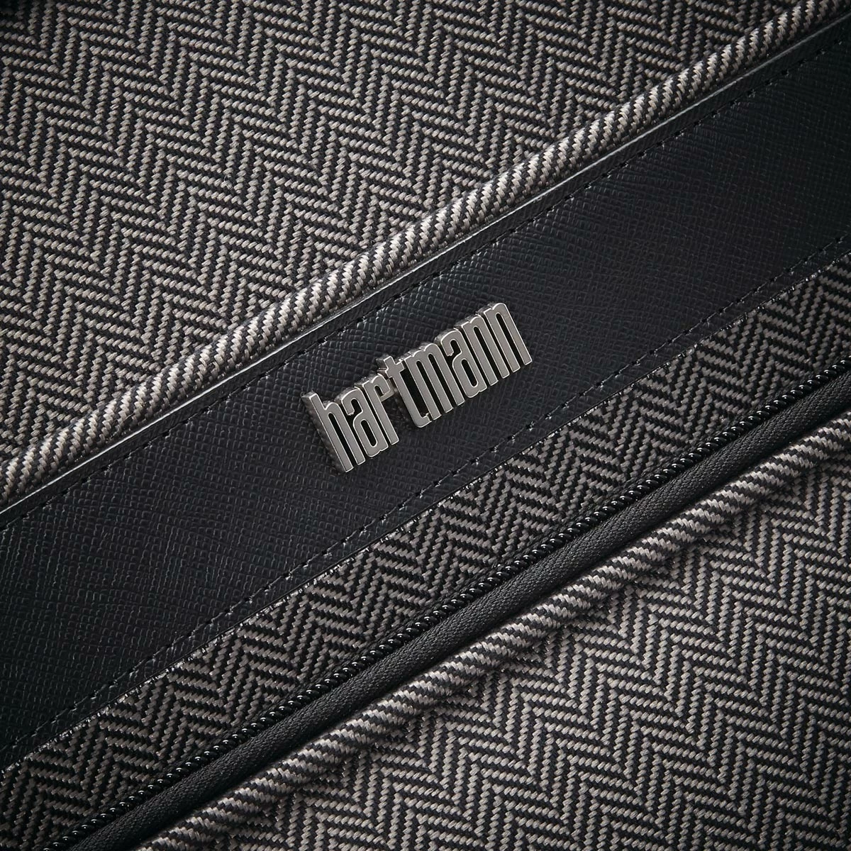 suitcaseThe Hartmann Herringbone Deluxe Medium Journey Expandable Spinner fits all of your belongings in distinctive style. Hartmann signature herringbone fabric and interior Ducord™ striped accents lend a bespoke look, while a padded tri-fold suiter, cross straps, and zippered pockets ensure packing organization.