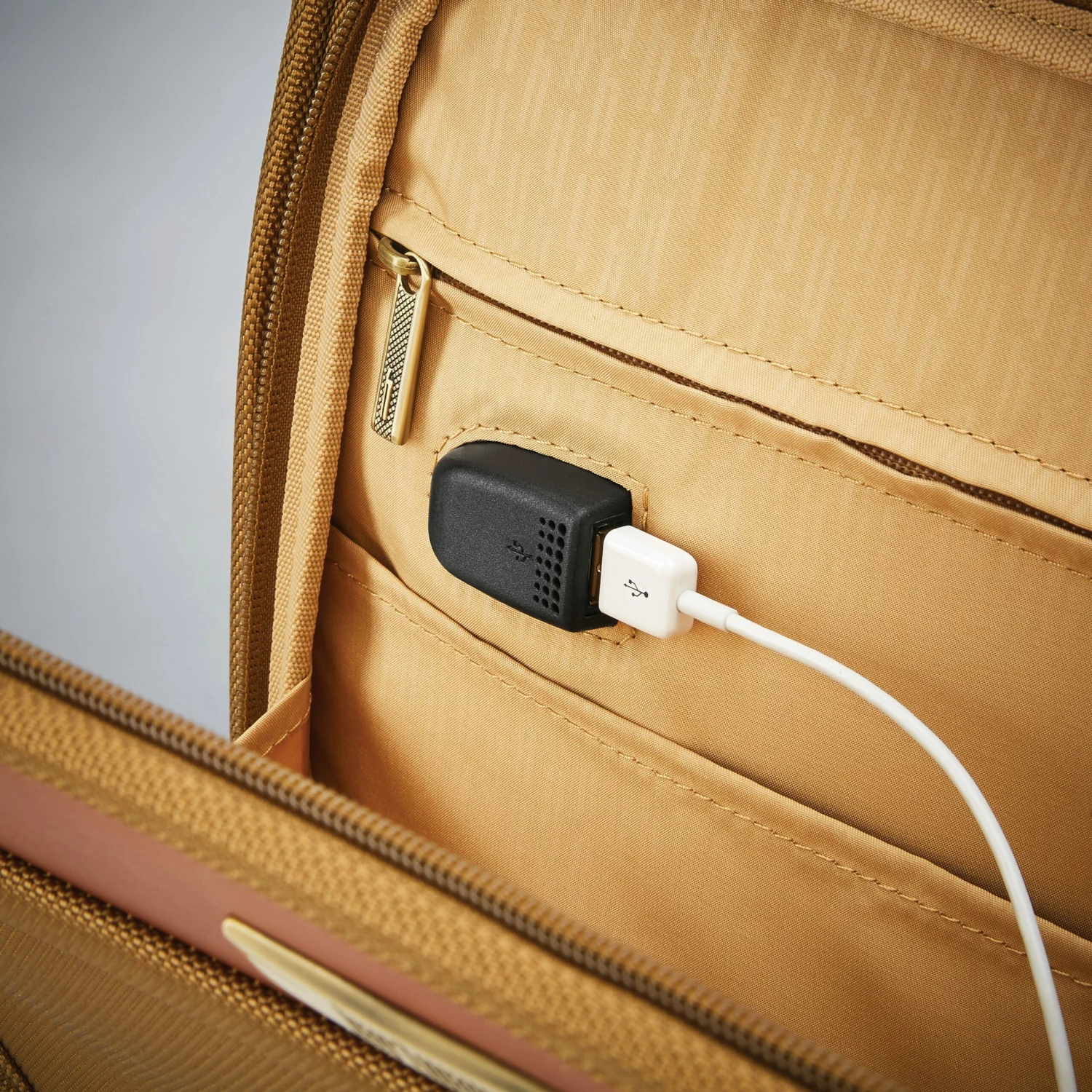 - USB Port in side pocket for convenient charging when traveling (battery not included)