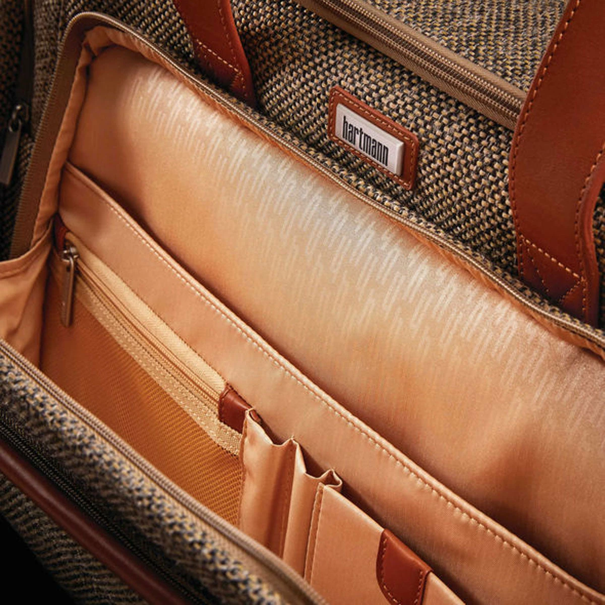 - Lustrous embossed lining and heritage leather insignia for Hartmann’s uncompromising attention to detail.