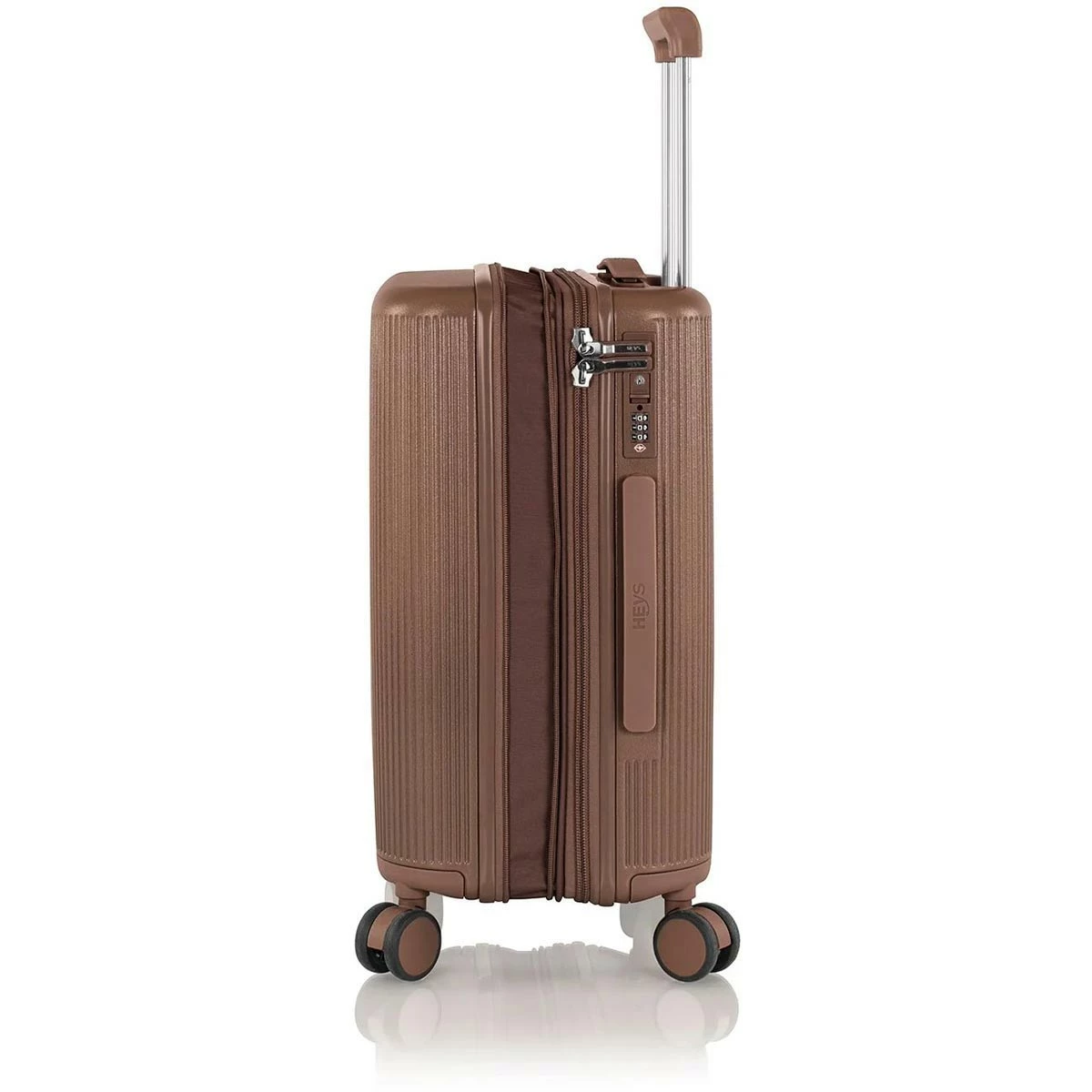The Heys Earth Tones 21″ Expandable Spinner is made of 100% pure Polycarbonate. It’s available in warm earth tone colors and features a fully-lined color matching interior with zippered divider, buckled compression straps and large zippered pockets as well as an expansion system that allows for an extra 20% in packing capacity. The 360° dual spinner wheels allow for effortless motion in different terrains and the flush mounted built-in TSA approved combination lock will keep your valuables safe.