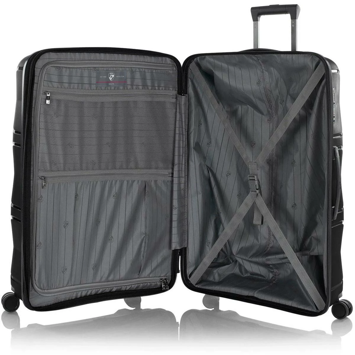 The Heys Milos 30″ Expandable Spinner is lightweight and impact resistant able to withstand a 750lb impact without breaking. Available in five stylish metallic colors with a subtle dual textured shell for a striking appearance. It features a fully-lined interior with zippered divider, buckled compression straps and zippered pockets as well as an expansion system that allows for an extra 20% in packing capacity. The 360° spinner wheels allow for effortless motion in different terrain and the flush mounted built-in color matched TSA approved combination lock help keep your valuables safe.
