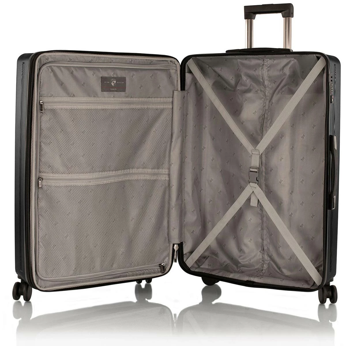 The Heys Spinlite 30″ Expandable Spinner is made of a lightweight polycarbonate that is durable and scuff-resistant with a diamond-emboss textured surface. It features a fully-lined interior with zippered divider, buckled compression straps and zippered pockets as well as an expansion system that allows for an extra 20% in packing capacity. The 360° spinner wheels allow for effortless motion in different terrains and the gel-cushioned top and side handles offer maximum comfort.