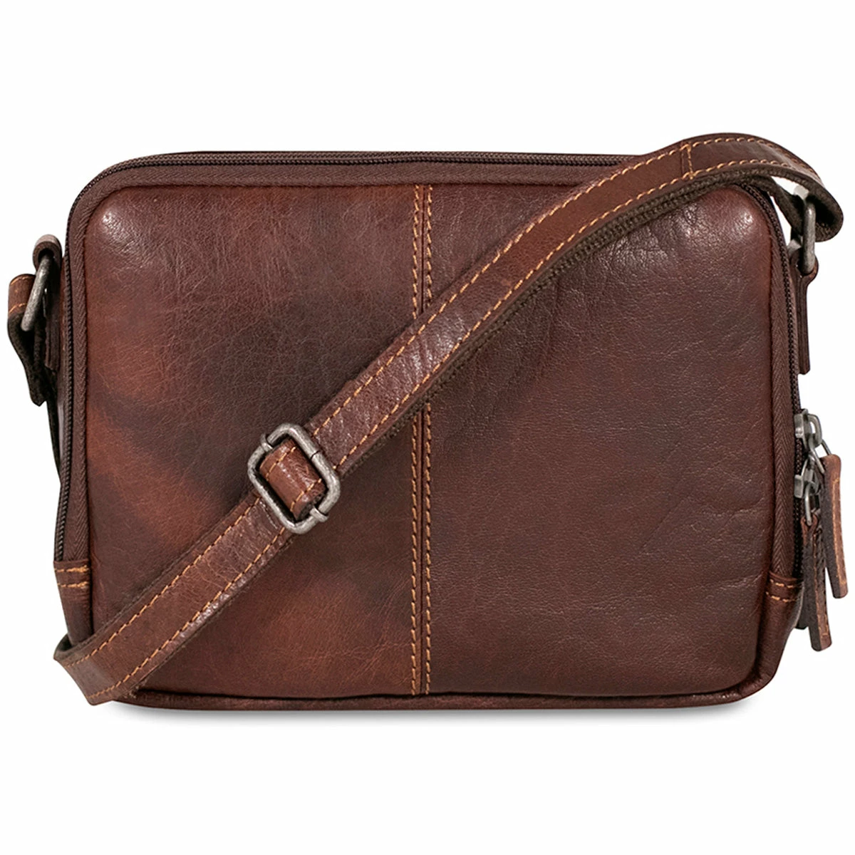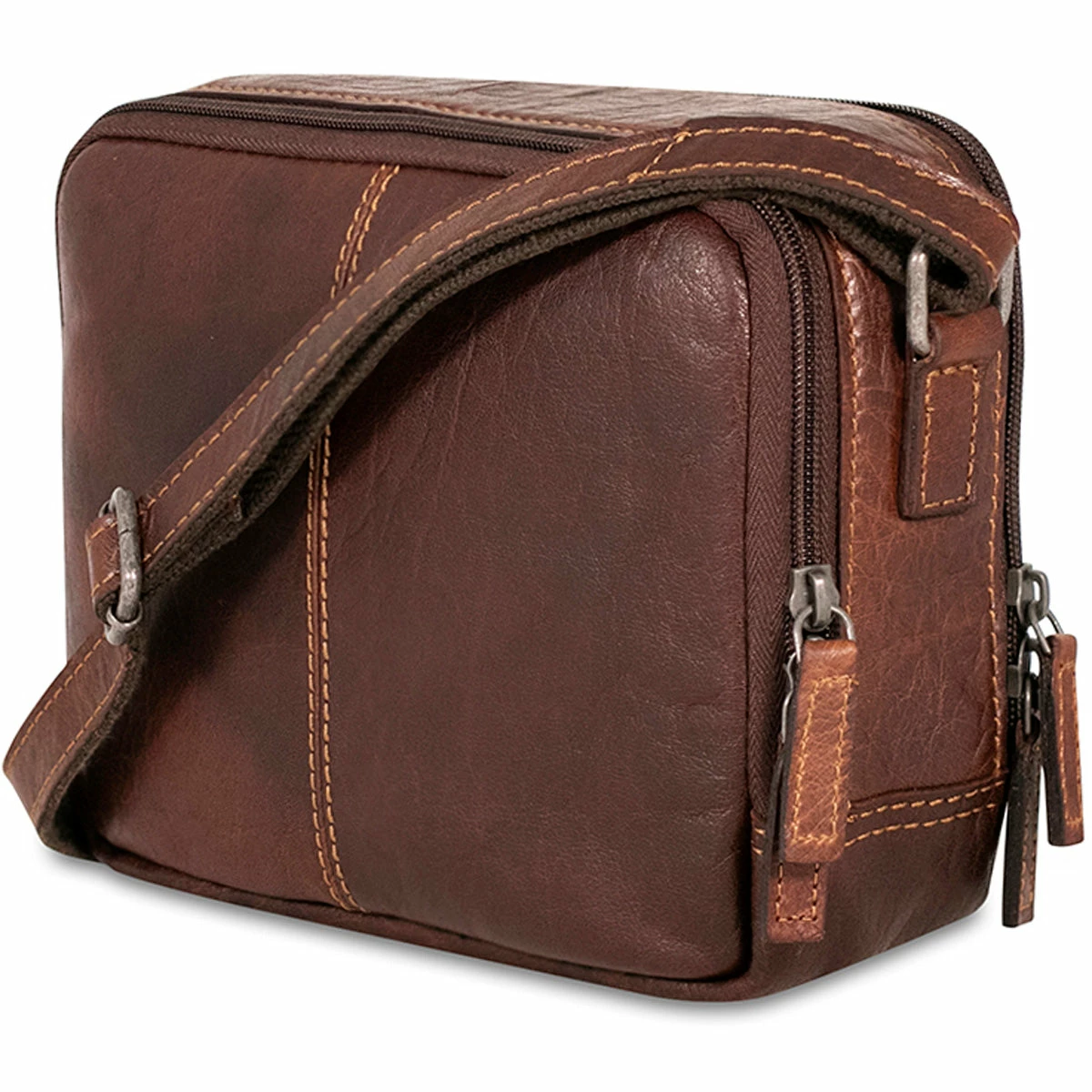 Jack Georges Voyager Double Zippered Crossbody Bag is made from hand-stained Buffalo leather that builds a rich, deep patina as it ages. Stay organized while shopping, running errands, or traveling completely hands-free with this functional double-zippered cross body organizer bag. Two three-way zip sections allow you to carry your mobile phone, passport, credit cards, wallet, keys, and other essentials. An adjustable shoulder strap allows you to wear the bag on your shoulder or across your chest. This leather bag features: