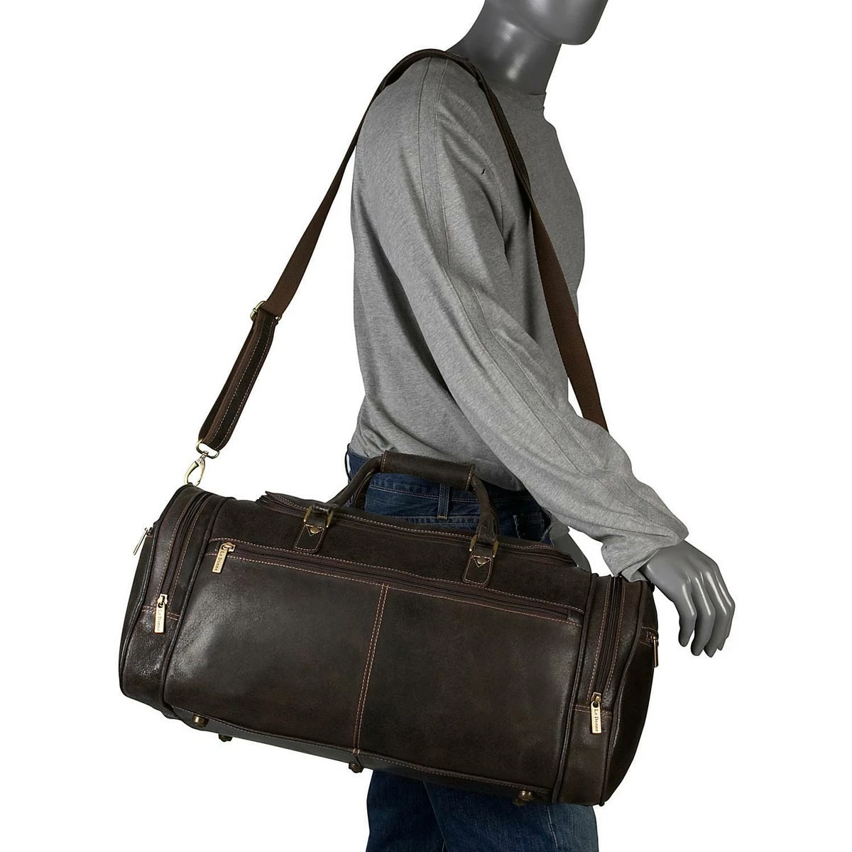 The LeDonne Leather Distressed Overnighter Duffel provides exceptional functionality and stylish good looks to accommodate your overnight trips. Handcrafted from distressed South American Vaquetta leather, this affordable leather bag features a sizable main compartment and plenty of pockets for stowing and organizing your essentials.