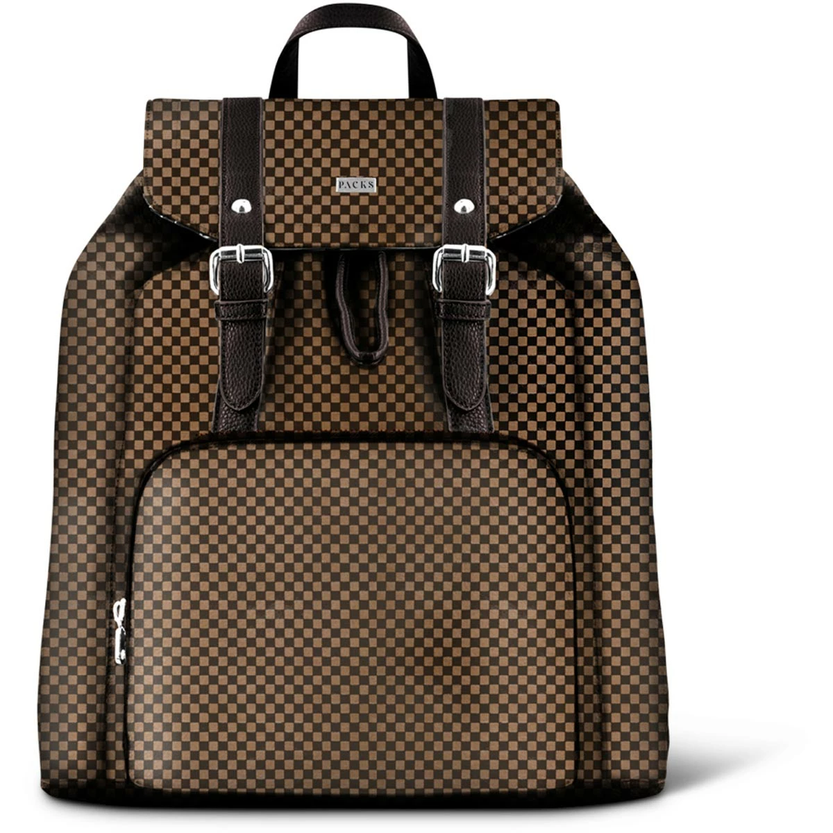 Packs Travel Camden Backpack is made of high quality full grain vegan leather with a signature “packs” interior. Featuring accommodations for a 13″ laptop, front storage pocket and exposed metal zippers.