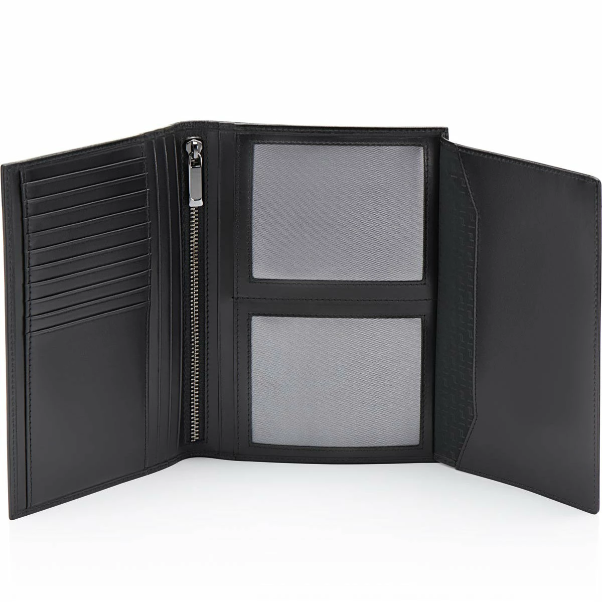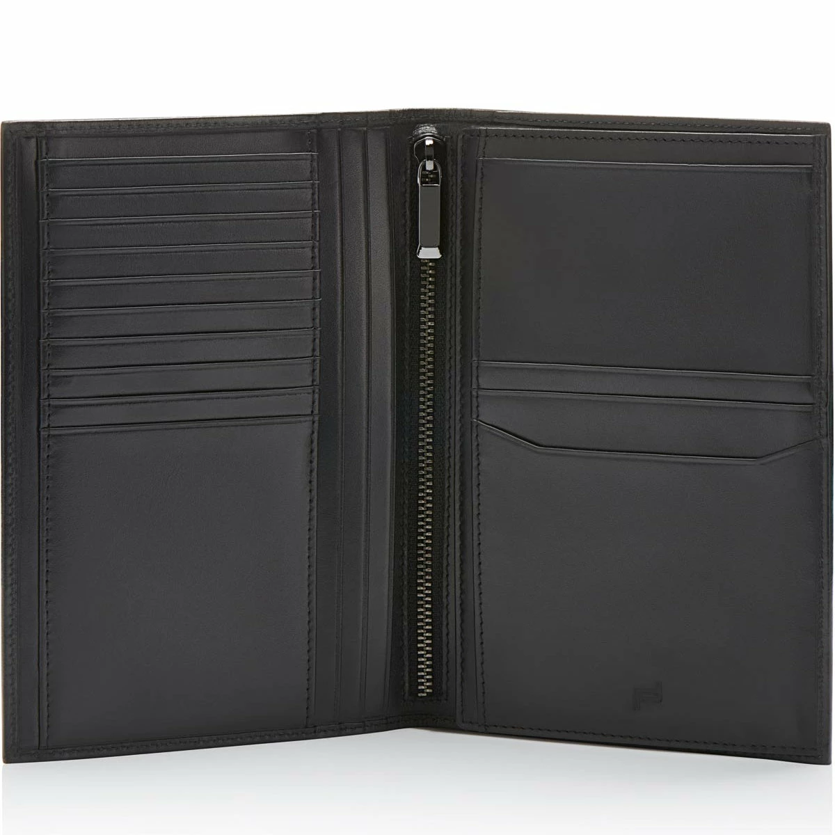 High-quality, shiny smooth leather in black, seamlessly created exteriors and the characteristic metal Porsche Design logo plate give the Porsche Design Classic Billfold 13 a timeless and minimalistic style. The high-quality interior is in line with the smart design: the men’s wallet amazes with an extraordinarily organized, spacious configuration. 13 credit card slots, a compartment for bills with a zipper, two mesh pockets for ID and eight larger pockets for documents, papers or passports make the spacious wallet an ideal travel companion.