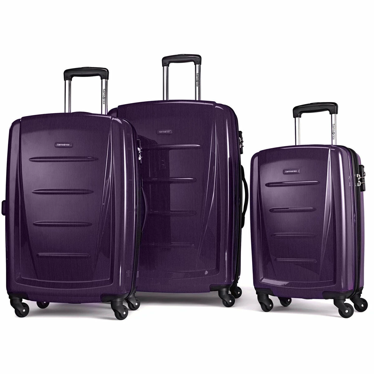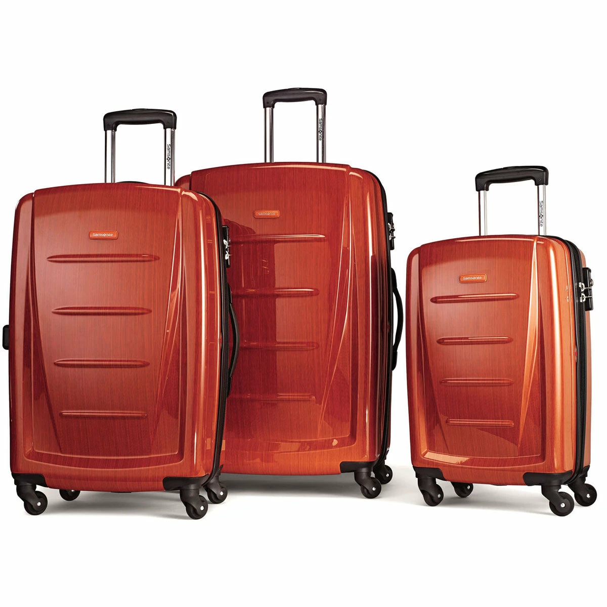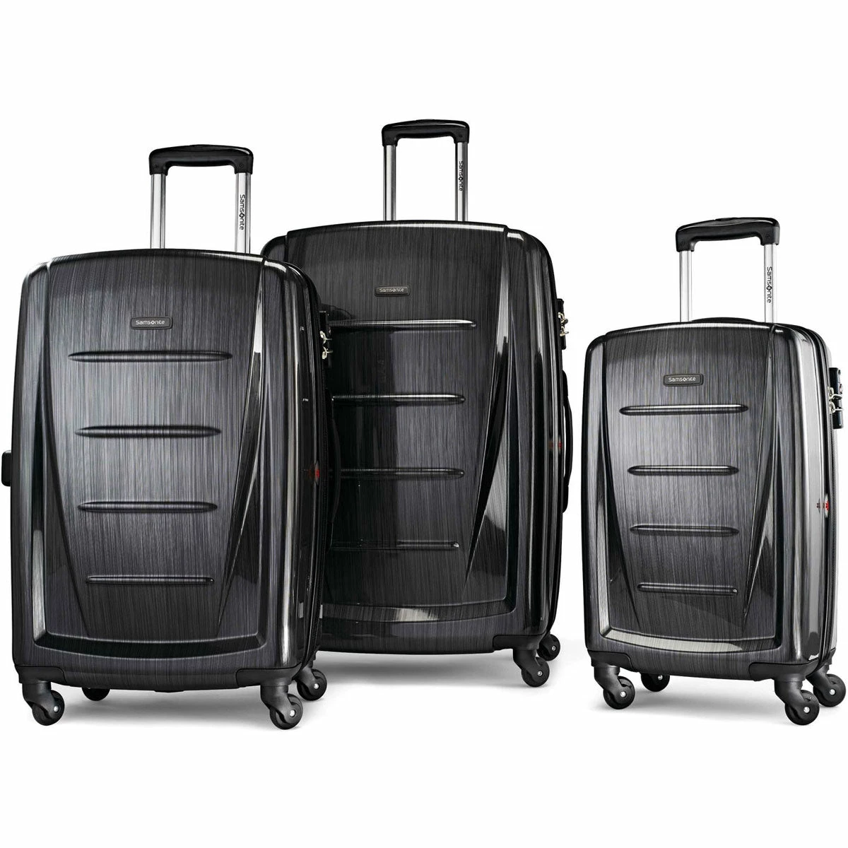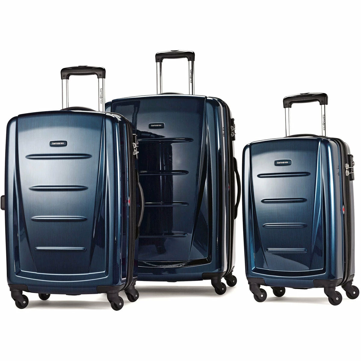 - 3 piece set features 20″, 24″ and 28″ spinners.