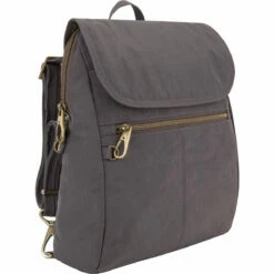 - Full Anti-Theft features include surround slash-resistant body panels and shoulder strap; locking compartments; lockdown strap; and RFID blocking card and passport slots and pockets