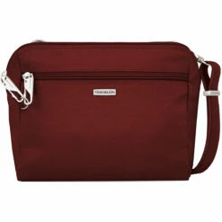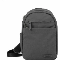- Full Anti-Theft features include surround slash-resistant body panels and shoulder strap; locking compartments; lockdown strap; and RFID blocking card and passport slots and pockets