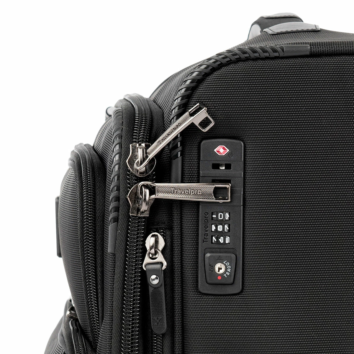 The durable Travelpro Crew Versapack 25″ Expandable Spinner gives you checked bag security and packing versatility for medium and longer trips. Built to last, this ultra-sturdy spinner features a tip-resistant zippered expansion that increases packing space up to two inches and a built-in lock that allows TSA authorities to safely unlock and relock the bag when needed.