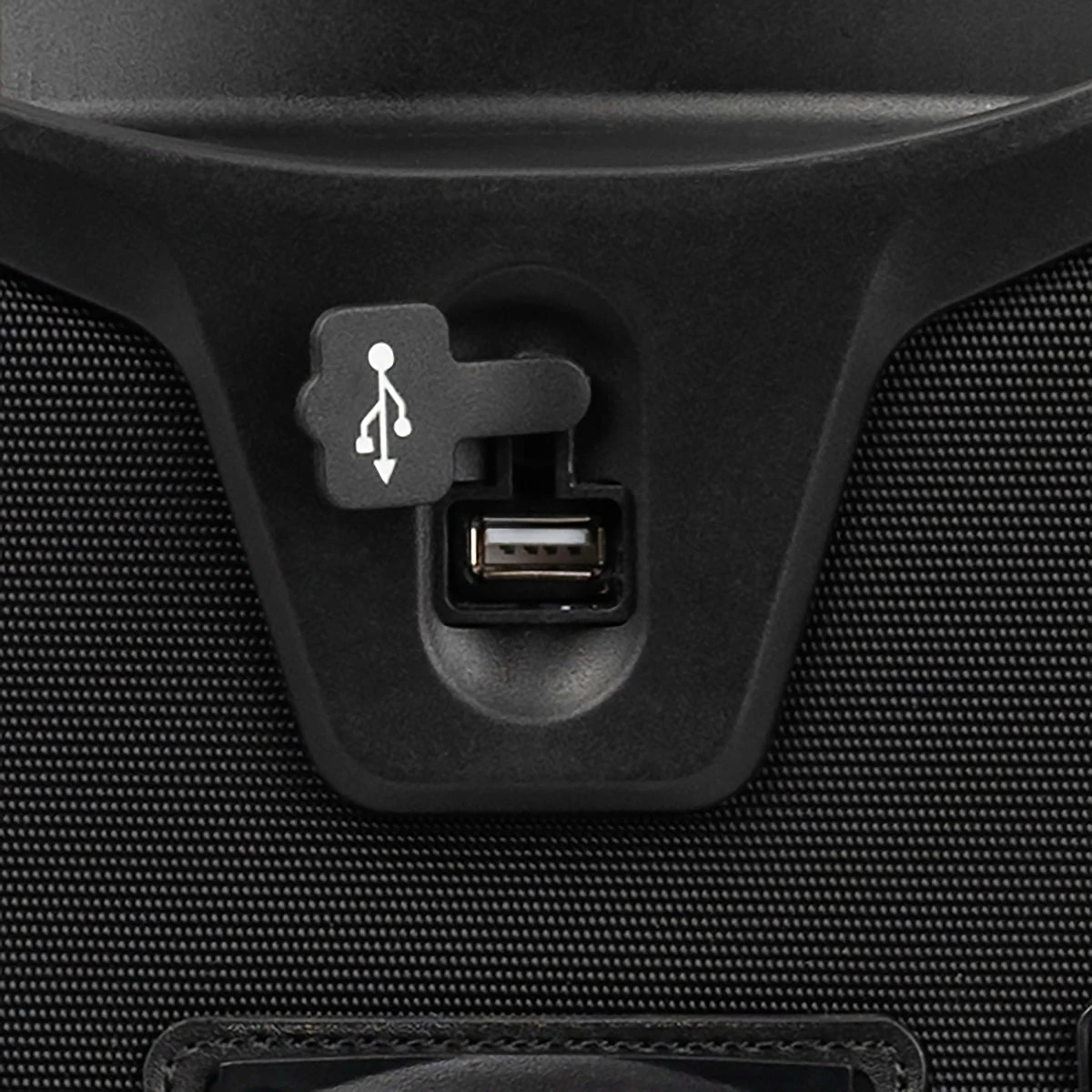 - Exterior power bank pocket provides FAA-compliant power connected to an external USB Port (battery not included)