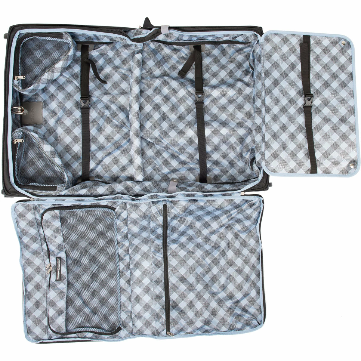 A garment bag made for the way you travel! This lightweight carry-on garment bag features inline wheels and a sturdy PowerScope Lite handle for gliding through airports with ease. Lay-flat design features padded straps to keep several suits, dresses, shirts and pants wrinkle free, while multiple pockets for undergarments, shoes, sweaters and more make organized packing simple.Â