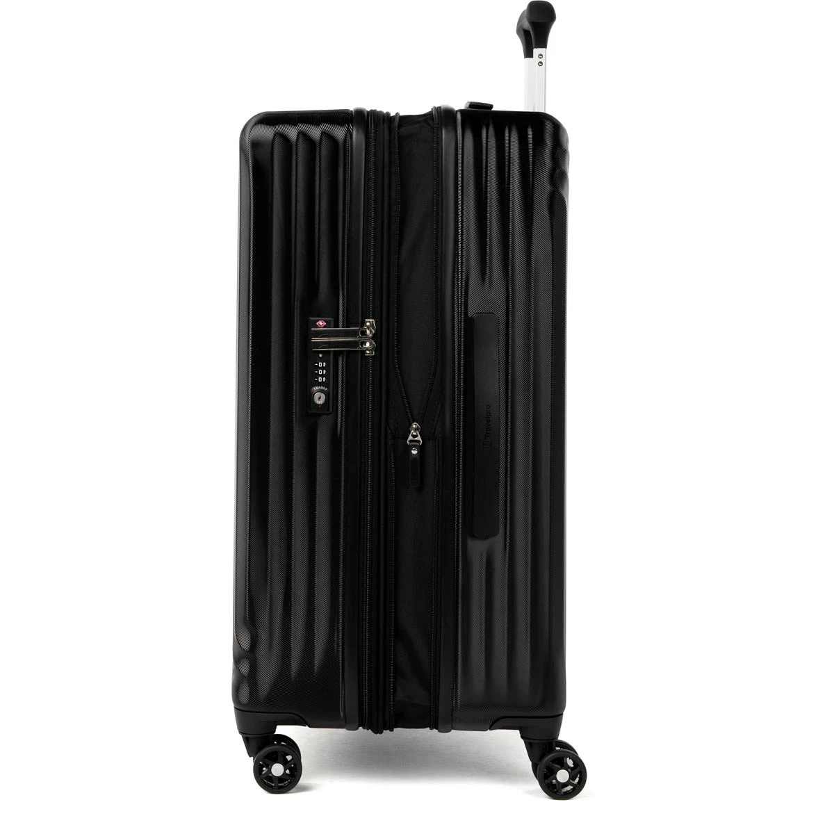 Load up and check in without extra weight. The lightweight, super durable Travelpro Maxlite Air 25″ Expandable Hardside Spinner gives you all the benefits of hard sided luggage in a resilient, well equipped suitcase, perfectly sized for medium and longer trips. The 100% polycarbonate exterior is engineered to flex on impact to prevent splitting, cracking or punctures, while a stylish exterior finish reduces visible scratches or scuffs.