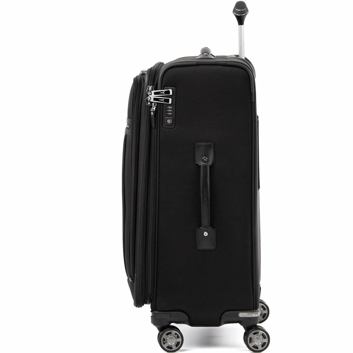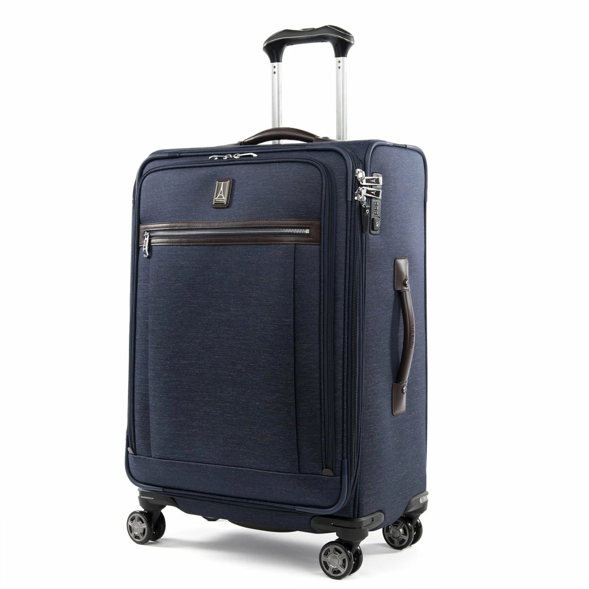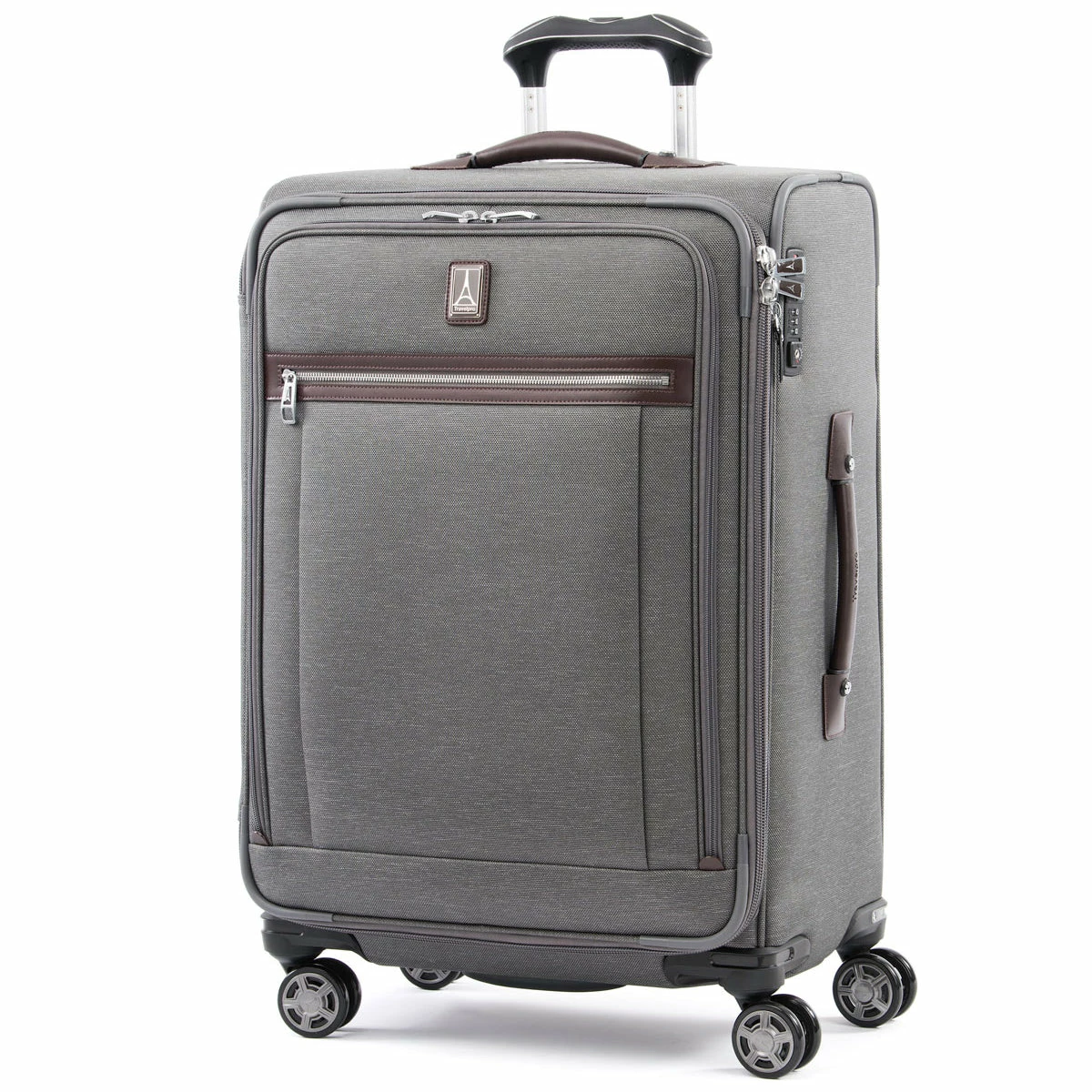 Finally, great looking checked luggage that is as functional and durable as it is stylish. The Platinum® Elite 25” Expandable Spinner is perfect for medium and long trips, accommodating everything you need, guarding against wrinkles with a built-in suiter and keeping everything organized under a deluxe tie-down system with integrated accessory pockets. Constructed with premium fabrics, leather accents and chrome zippers, this gorgeous bag also features a tip-resistant tapered expansion option that provides up to 2” additional packing capacity.