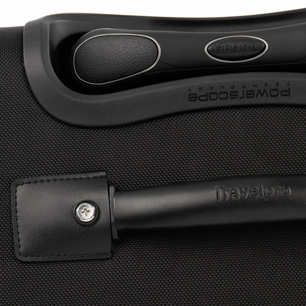 - Patented PowerScope airline-grade aluminum extension handle minimizes wobble and has four stops at 36″, 38”, 40”, and 42.5”.