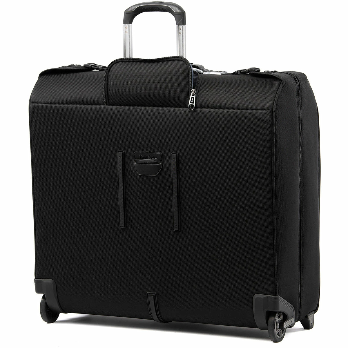 Go large and in charge. The Travelpro Platinum Elite 50″ Rolling Garment Bag accommodates several hanging garments with its larger interior and a padded roll bar to guard against wrinkles. Multiple interior pockets accommodate folded clothing, undergarments, accessories and more, while a large exterior pocket and smaller zippered pocket provide ample room for a computer, tablet or other on-board essentials.
