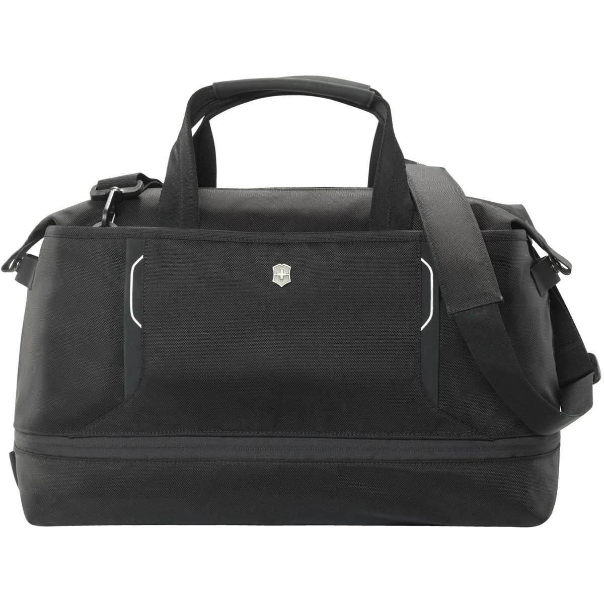 - Adjustable shoulder strap and dual loop, leather wrapped carry handles